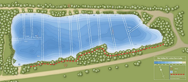 If you are looking for variety in your fishing then this a great lake to try as you never know what might be taking your bait next.This superb fishery is becoming the second best Carp water in our area, the first being Lake Geneva. A large head of quality carp can be regularly seen moving in and around the margins of this beautiful lake. Most of the swims are on the North bank, mostly seperated by trees and bushes giving cover from the fish, with deep margins and relatively clear water the quiet angler will always score better in the long run. Some swims have marginal reeds to add variety.